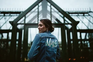 We opted for two looks from our consignment collection to lean into the combination of high-fashion and the somewhat industrial backdrop: a bell sleeve mini dress and cape combo by Bohyne and a ballgown by Wtoo.